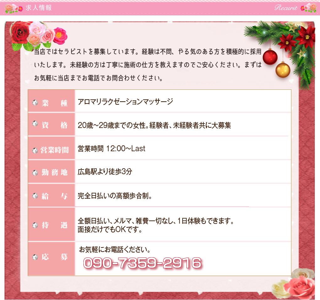 ホーム   |   システム   |   セラピスト  |   ギャラリー  |   アクセス  |   求人情報